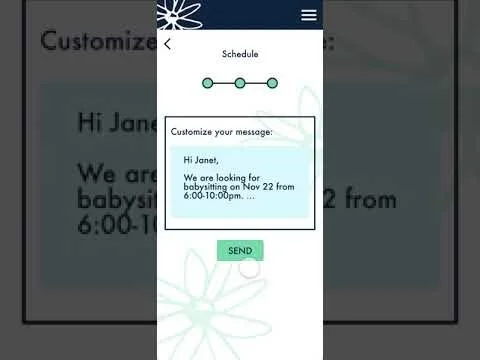 Proof of concept digital mockup of a babysitting mobile app for a startup looking to make it easier for parents to find and schedule babysitters in their area.